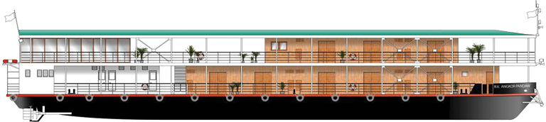Sister to the Katha and from the same yard delivered in 2013, the only difference with the Katha is an enclosed air conditioned dining room insisted on by an American charterer. Originally on the Mekong in 2015 we transferred her to the Red River in North Vietnam. In fact the enclosed dining room has proved useful as it can be cold up there in winter.